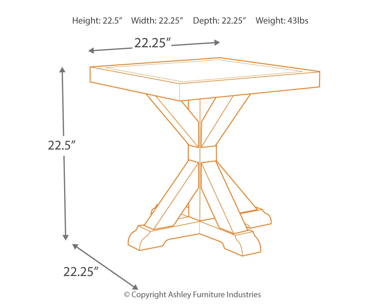 | Square End Table | 22" | 22" | 22" |