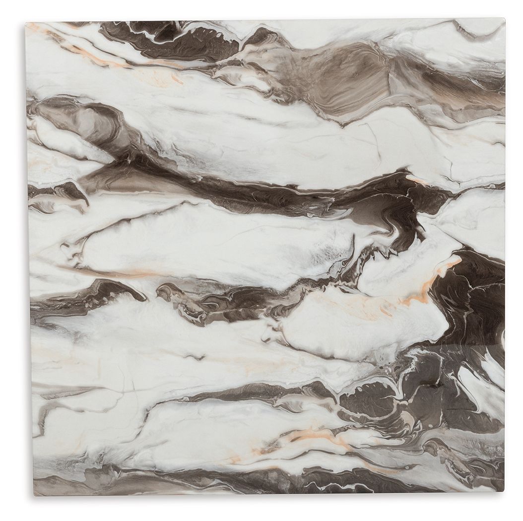 - Tabletop with replicated marble pattern; polyester topcoat for lasting beauty