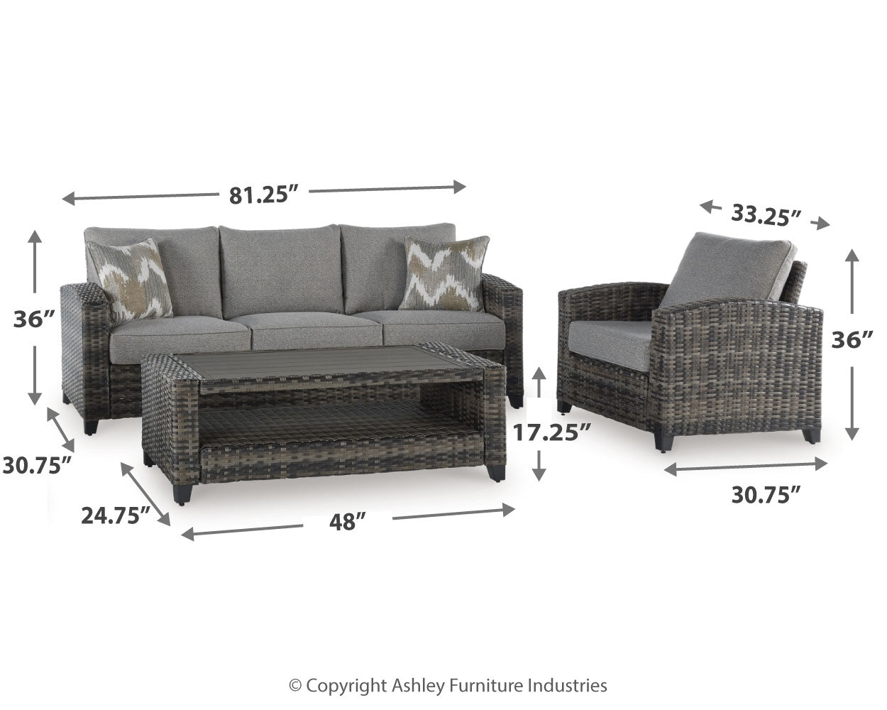 | Sofa/Chairs/Table Set (4/CN) | 81" | 31" | 36" |